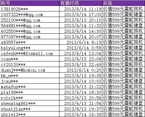 “军团争霸邀请赛”竞猜活动第二轮获奖名单: